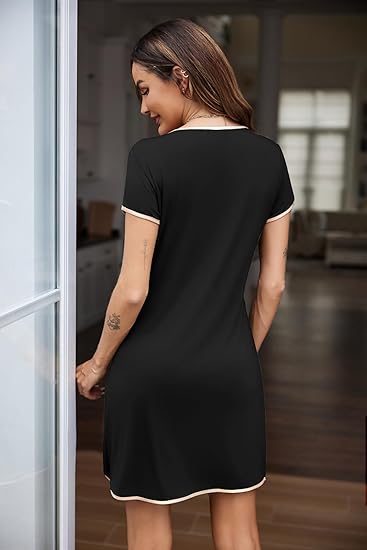 - 【Features】Night shirts for women sleepwear smooth satin trim ,relaxed fit, short sleeves, scoop neckline with pocket, hemline falls above the knee, soft, stretchy and light weight, loose fitting with ease.