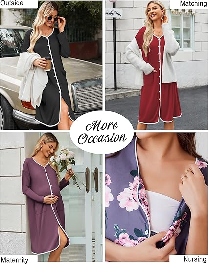 • Functional Nightshirt: The button-down nightgown is perfect for breastfeeding, you can use this sleepshirt as a nursing nightgown and wear a nursing bra underneath, which is very useful and convenient