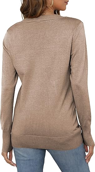 - The versatile v-neckline is perfect for layering over a blouse or tee. The unique threaded placket detail adds a touch of elegance to this womens cardigans, making it perfect for dressing up or down