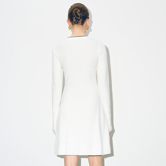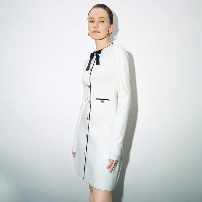 • 【UNQIUE DESIGN】URBAN REVIVO knit sweater dress comes with the Long sleeve,crew neck,well made metal buttons and two decorative chest pockets; A detachable black bow at the neckline add a exquisite and stylish touch to this long-sleeved pullover sweater dress. The waist slim fit design shows off your figture curves perfectly;